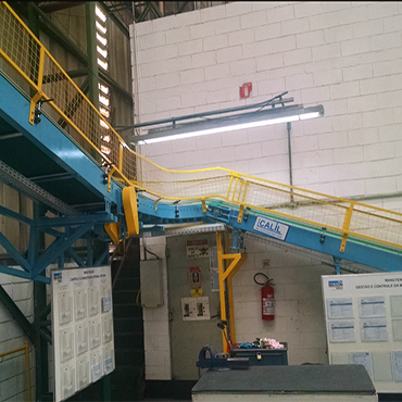 As esteiras transportadoras podem ser por correia, com ou sem taliscas, roletes tracionados ou livres, tela balanceada em aço carbono ou aço inox.